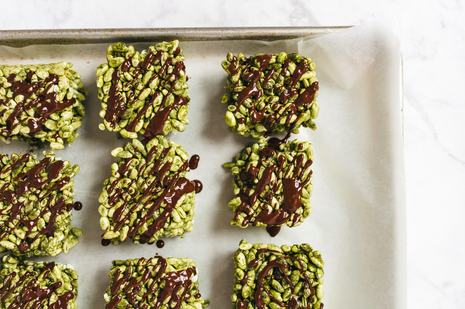 You can drip or drizzle melted dark chocolate on the rice puff treats. (I prefer drizzling the chocolate because it’s more fun.) Melt dark chocolate and coconut oil together in a heat-safe glass bowl, over a small saucepan, on low heat. Watch a tutorial for how to melt chocolate for a detailed explanation of this method.